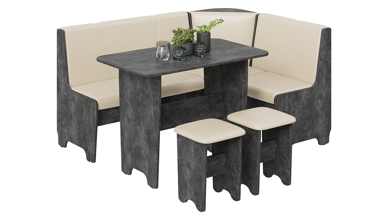 • Обеденная зона "Техас" состоит из удобной угловой скамьи, практичного стола и компактных табуретов.